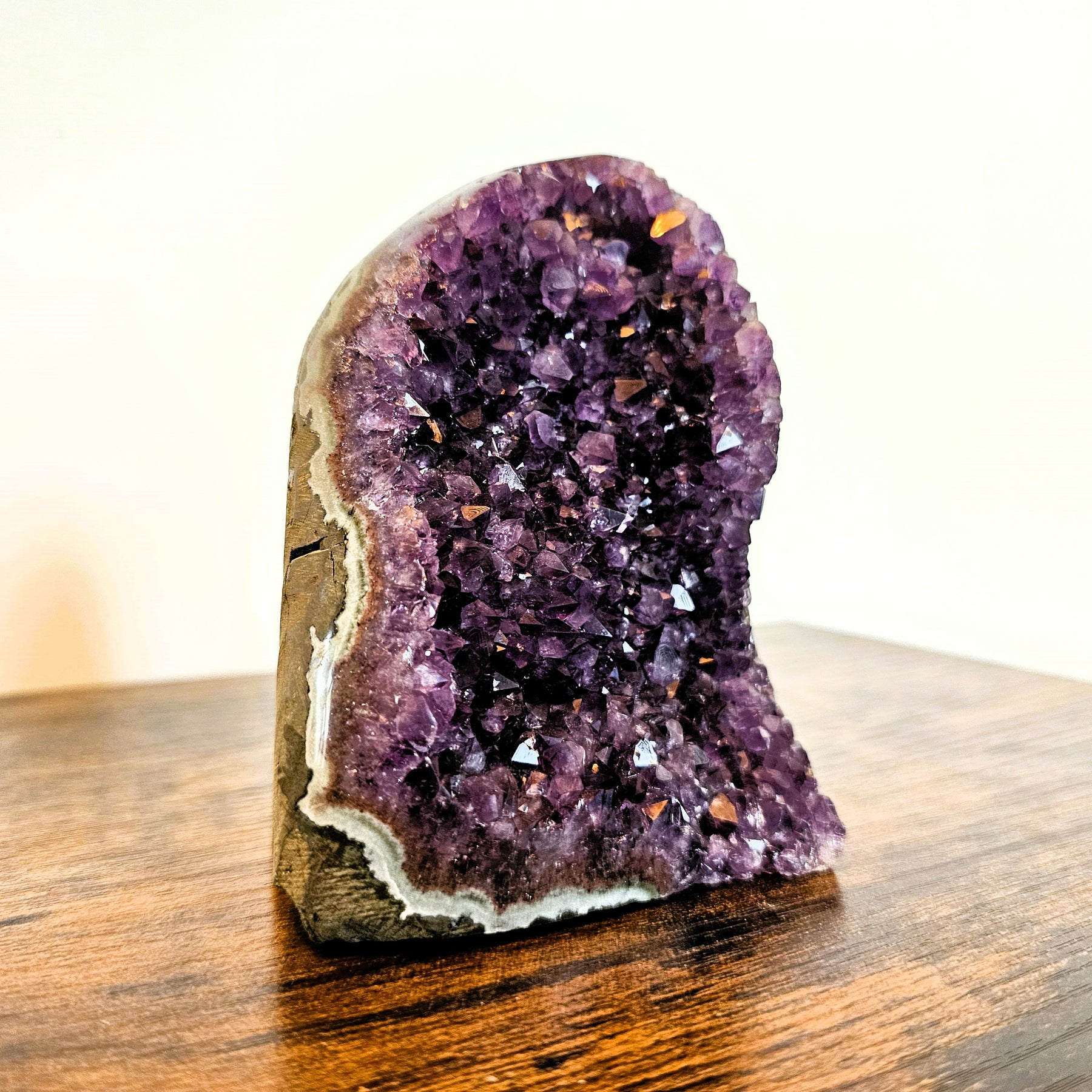 Der Amethyst gehört zur Familie der Quarze und zeichnet sich durch seine kräftige, violette Farbe aus, die von einem zarten Lavendelton bis hin zu einem tiefen, königlichen Violett variieren kann. Die spezifische Farbe wird durch den Anteil von Eisen und Mangan hervorgerufen.