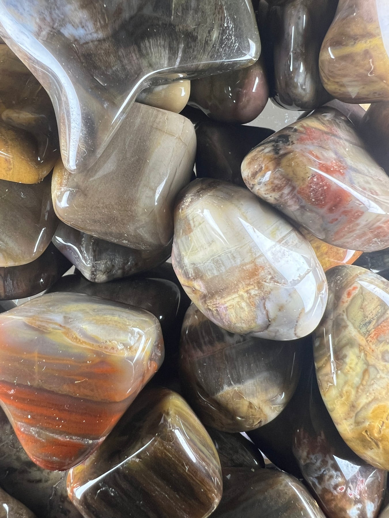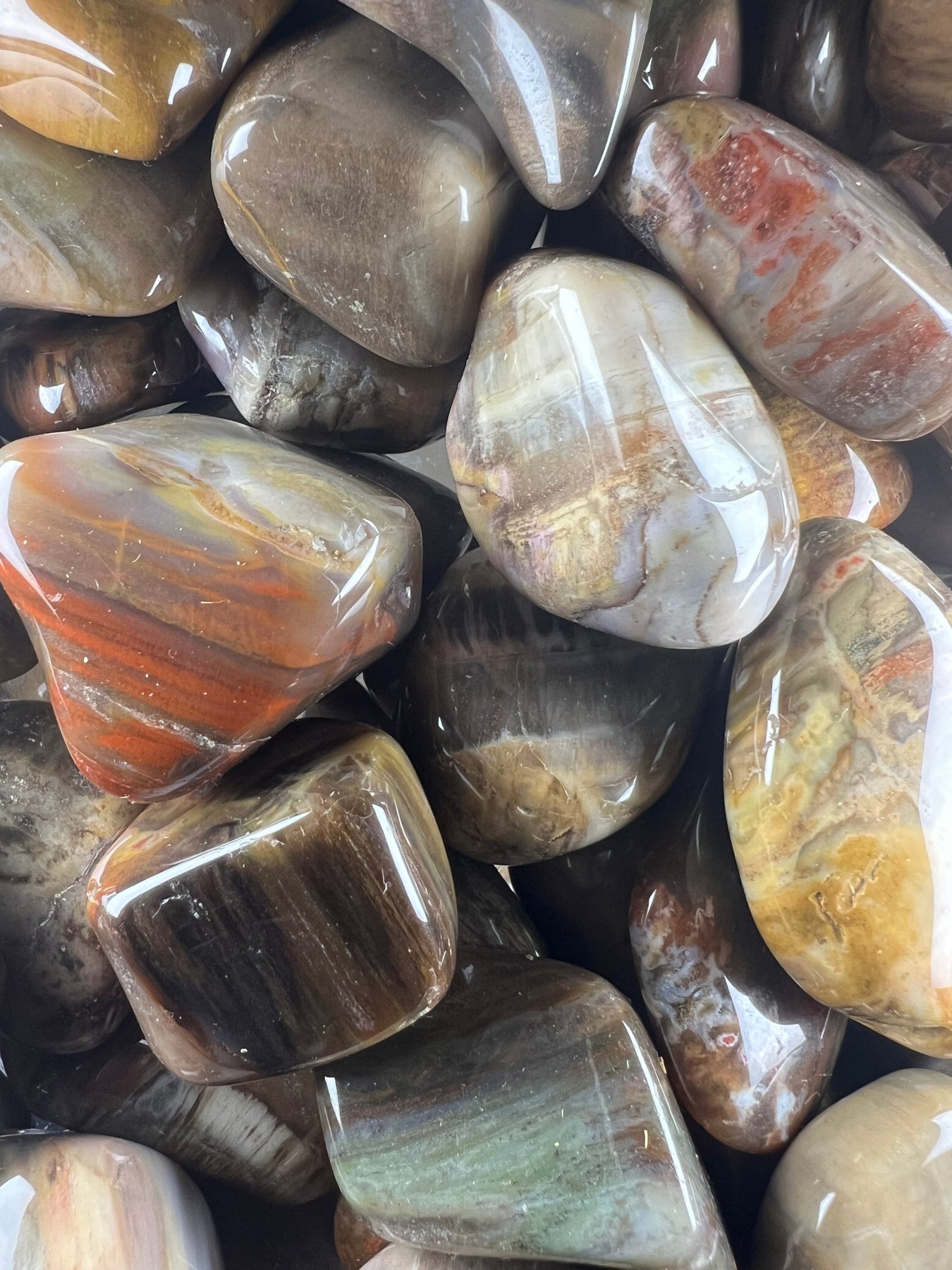 Jeder Trommelstein ist ein Naturunikat. Struktur, Farbton und Maserung variieren und machen jeden Stein einzigartig.