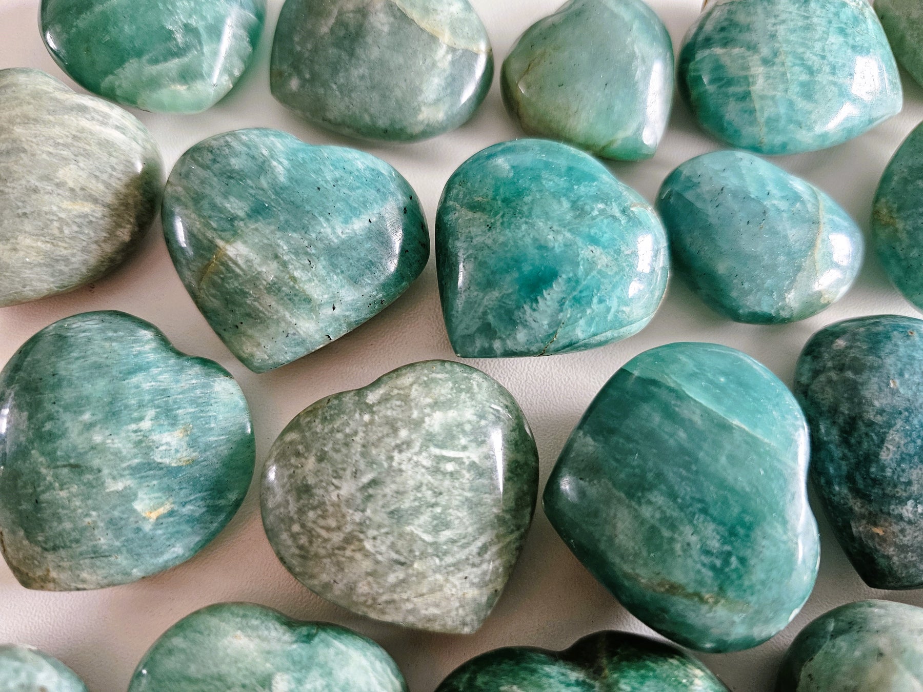 Unsere Amazonit Herzen werden sorgfältig von Hand aus hochwertigen Steinen ausgewählt und kunstvoll zu glatten, glänzenden Herzen verarbeitet. Jeder Stein ist ein Unikat.